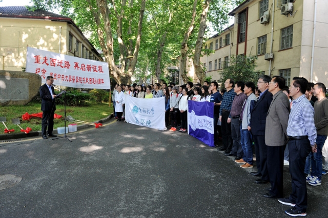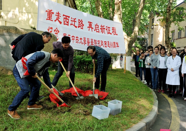 取土仪式由必威·BETWAY党委书记谭东伟主持。在回顾历史的基础上,校长助理、必威·BETWAY院长刘乃丰与校党委宣传部部长毛惠西、丁家桥校区党工委书记、管委会主任张立武、公共卫生学院党委书记李涛共同挥锹掘土,所取之土近日将由代表携带,重走西迁之路,并取成都华西坝之土,带回丁家桥。