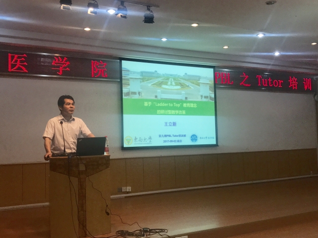 培训由理论讲座与实践实训两个环节构成。在理论讲座环节,首先由王立新副院长进行了培训动员及基于“Ladder to Top”教育理念的研讨型教学改革讲述,就目前医学教育教学改革趋势及我们教学理念及教学改革情况向大家做了介绍,并强调了Tutor在PBL教学活动中的重要作用。随后,?xml:namespace>
