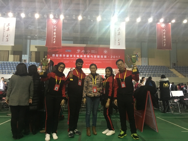 由于晓明老师带领的我们留学生代表12级郑达鸿(CHANG TARK HUNG,马来西亚),塞萨(SANTHA KUMAR K,印度),玛丽莲(MARYAM KHALIL EBRAHIM SALMAN HUSAIN ALHALAL,巴林),马维尔(MARWA ABBAS ISA ALI KADHEM,巴林)在竞赛中荣获优秀团队奖,最佳组织奖两项团体奖及赛萨同学获得了妇产科单项优异奖共三项奖项,成绩优异。章昊洋、谢波、胡燕、温泉、彭贞丹、曹静敏、魏来老师全程陪同,为竞赛选手加油鼓励。
