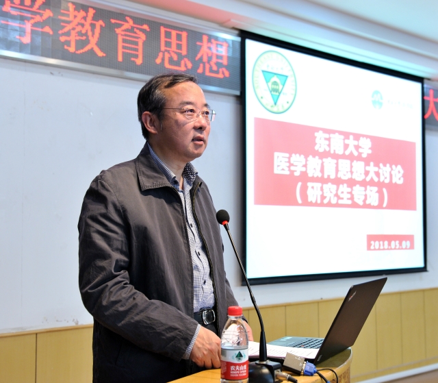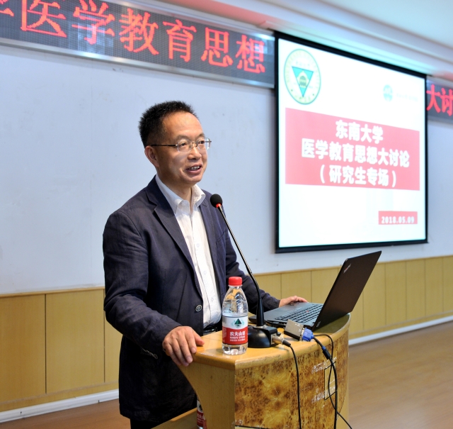 5月9日下午,必威BETWAY官网医学教育思想大讨论(研究生专场)在丁家桥校区综合楼二楼学术报告厅举行,必威BETWAY官网实验室与设备管理处处长熊宏齐、党委研究生工作部副部长兼研究生管理办公室主任赵松立、研究生院学位办罗斌、必威·BETWAY领导班子成员、研究生导师、基地医院教育处工作人员以及必威·BETWAY研究生代表共一百余人参加了本次思想大讨论。必威BETWAY官网校长助理兼必威·BETWAY院长刘乃丰教授主持了本次会议。