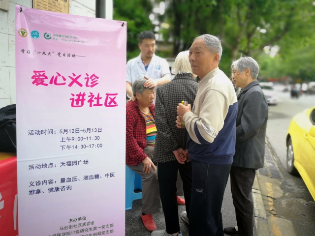 5月12、13日,必威·BETWAY2017年级研究生第一党支部联合湖南路街道马台街社区居委会、必威·BETWAY16年级研究生科硕党支部开展了为期两天的“学习十九大,义诊进社区”党日活动,为社区居民群众送去健康知识和爱心义诊服务,受到热烈欢迎。