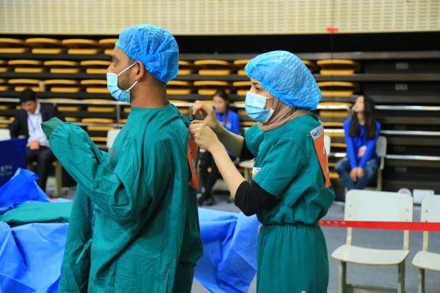本次竞赛分为预赛和决赛,竞赛方式为赛道式。竞赛内容涵盖内、外、妇、儿、急救等科目,决赛模拟的是车祸的现场急救内容。所有的竞赛题目均为英文临床真实病例,重点考核来华医学留学生的医学临床思维、以患者为中心的人文关怀精神和与患者的沟通技巧和规范化的临床操作。