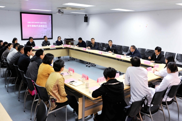 之后,张校长对青年教师提出期盼和希望,一是要树立崇高目标和正确价值观,特别是要对标东大“1-10-100”发展目标,融入学校“双一流”建设进程,锐意奋斗,争做一流;二是要积极面对学科发展存在的困难,努力克服未来五到八年在办学空间、科研条件、共享平台等方面的发展瓶颈,攻坚克难,持之以恒;三是要找准发展的特色路径,特别是立足“特色医科”布局和“双一流”建设全局,强化理工文医综合和国际化联合。