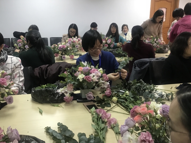 11月28日,必威·BETWAY工会“鲜花相伴 享受生活”花艺沙龙活动在丁家桥校区综合楼324举行,来自各学系、部门的四十余位老师分两个场次参加了本次活动。