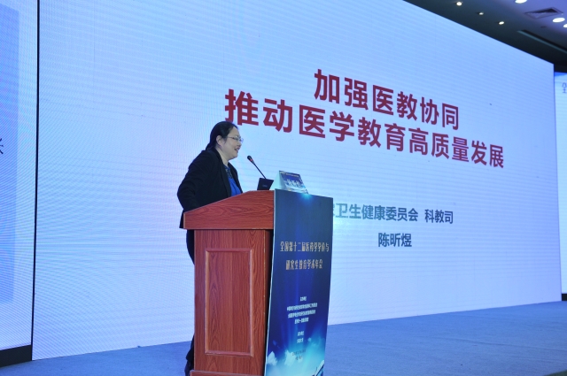 国家卫生健康委科技教育司副司长陈昕煜作题为《推动医教协同,提高研究生教育高质量》的主题报告。