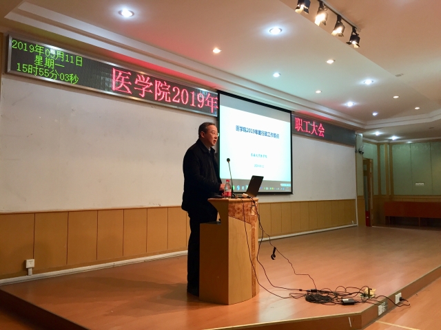 刘乃丰院长作专题报告,对学院2019年度重点工作进行了部署,针对科学研究、学科建设、人才师资队伍建设、人才培养、学生工作、国际合作与交流、综合改革等方面工作提出了具体要求。