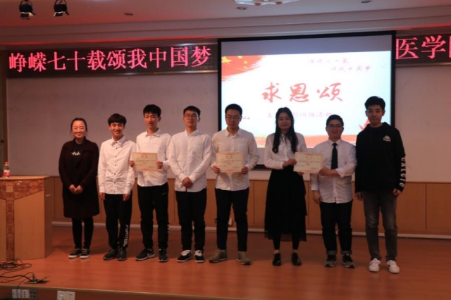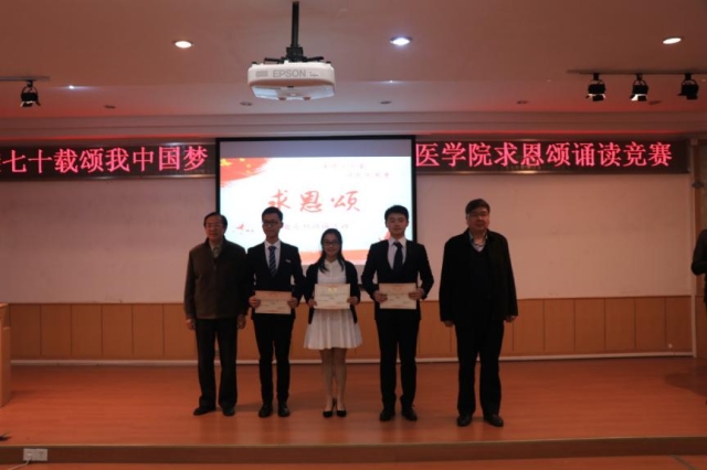 本次朗诵活动由1支教师队,20支学生队,共21支队伍组成。经过各组队员饱含深情,富于激情的朗诵,最终由王溥丰、常婧瑶、王家杰带来的作品《盛世中华》荣获一等奖;刘丽萍、曹鑫的《峥嵘岁月,你我皆是追梦人》、赵猛的《医者》荣获二等奖;张可的《中国脊梁吾辈担当》、阮亮、黄帅璟、万理林的《涅槃颂》和徐帅磊、江雨昕的《祖国母亲》荣获获三等奖。