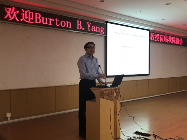 2019年4月8日,我们特邀加拿大多伦多大学实验医学和病理学系教授,Sunnybrook健康科学研究中心资深科学家Prof. BurtonB.Yang于综合楼二楼学术报告厅举办了以“The roles of circYAP in regulating cell functions”为主题的专题讲座,必威·BETWAY副院长姚红红教授代表必威·BETWAY全体师生致欢迎词,大会吸引了必威·BETWAY、中大医院、公共卫生学院、生命科学研究院、生必威·BETWAY的教职工以及研究生、本科生百余人参加。