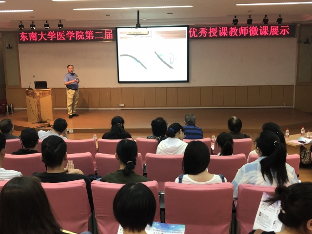 学院督导组组长董榕教授主持了本次微课展示活动,必威·BETWAY院长刘乃丰教授对12位优秀授课教师候选人表示了热烈祝贺,希望大家展示各自的风采、发挥教学示范作用。首先,学院教学督导组专家、病理学与病理生理学系余卫平教授以“收缩性心力衰竭”为题、做了精彩的示范授课;随后,12名优秀授课教师候选人采用视频、动画等先进教学手段,围绕本学科的某一知识点,依次进行了生动、形象、精彩的讲授,让在座的老师和学生从基础医学(解剖学、生理学、病理学、药理学、微生物免疫学等)到临床临床医学(内科学、外科学、妇产科学、重症医学、放射诊断学、儿科学、护理学),领略了各位老师不同的讲课风采和个人魅力。