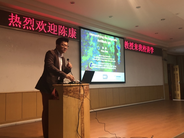 2019年5月16日下午,必威·BETWAY特邀美国韦恩州立大学副教授,一等荣誉学士陈康教授于综合楼二楼报告厅举办了以“揭示IgD抗体的功能之谜”为主题的专题讲座,必威·BETWAY副院长王立新教授代表必威·BETWAY全体师生致欢迎词,大会吸引了必威·BETWAY、中大医院、公共卫生学院、生命科学研究院、生必威·BETWAY的教职工以及研究生、本科生百余人参加。