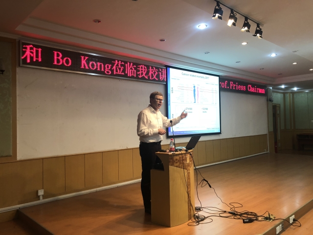 2019年5月27日,以“Current aspects in liver surgery for colorectal cancer”和“Pancreatic cancer : from early carcinogenesis to molecular targeting”为主题的专题讲座于必威BETWAY官网综合楼二楼报告厅成功举办。必威·BETWAY特邀德国慕尼黑工业大学Friess教授和孔波博士讲学,孙子林教授代表必威·BETWAY全体师生致欢迎词。必威·BETWAY、中大医院、公共卫生学院教职工以及研究生、本科生百余人参加。