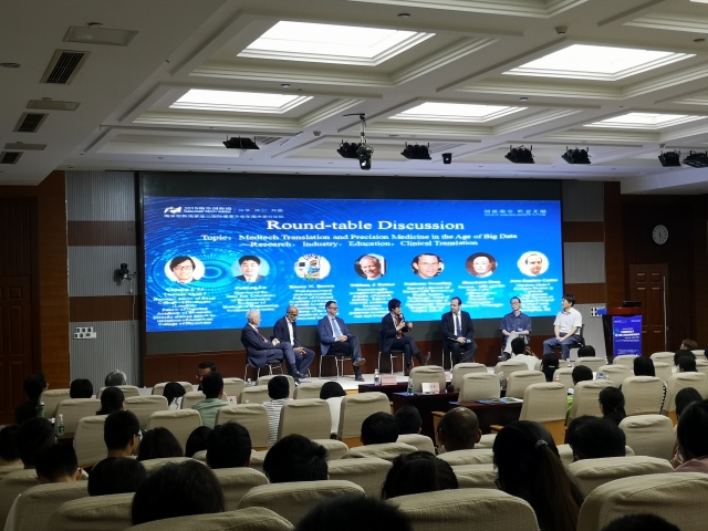瑞典乌普萨拉大学必威·BETWAY院长Eva Tiensuu Janson,德国乌尔姆大学必威·BETWAY副院长Peter Gierschik,澳大利亚国家健康与医学研究委员会营养与代谢卓越研究中心主任Michael Horowitz,从诊断,治疗,基因突变及病人管理方面阐述了精准医学的优势和可发展空间;英国伯明翰大学Jean-Baptiste Cazier教授将精准医学与基因组作比较,从另一角度解释了精准医学在数据整理方面的优越性;日本神户大学系统信息学研究科罗志伟教授,日本奈良科学技术研究所Yoshinobu Sato教授,向大家介绍了老龄化社会健康机器人的系统创新以及肌肉骨骼医学成像;英国伯明翰大学教授Georgios V. Gkoutos详细介绍了大规模实现精准医学的表型组学方法。报告不仅为与会代表带来了最前沿的学术知识,也让大家明显感受到近几年大数据背景下精准医学领域的快速发展与变化。本次分论坛还邀请了国际国内生物医药与工程领域多位知名专家学者、企业家进行交流,如美国生物产业之父,基因工程奠基人,乙肝疫苗发明人,美国科学院院士William J.Rutter;哈佛大学-麻省理工联合健康学院院长,美国科学院、美国工程院院士Emery N. Brown等著名学者,他们深入探讨大数据时代下医工结合的精准医学最新研究方向。