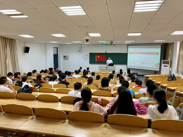 2019年9月19日13时,必威·BETWAY在基一102教室召开2019年级研究生党员大会,组建四个党支部,并选举产生各党支部的支部委员会。必威·BETWAY党委副书记兼副院长周明阳、党委委员石然、学办唐天奎、陈海平老师出席本次大会。