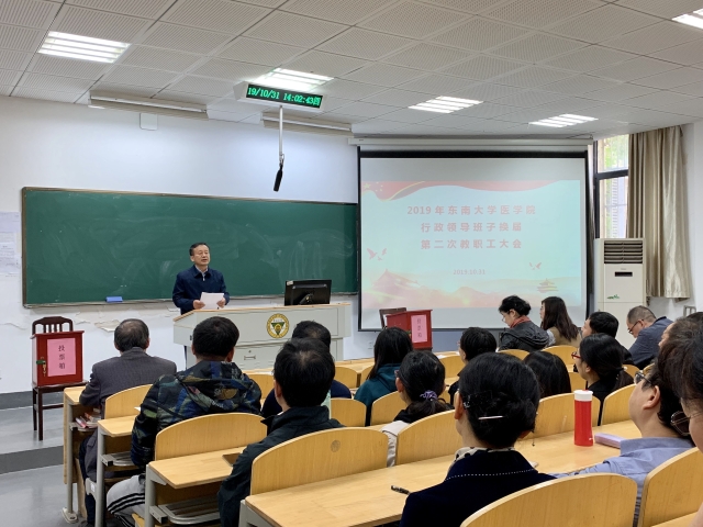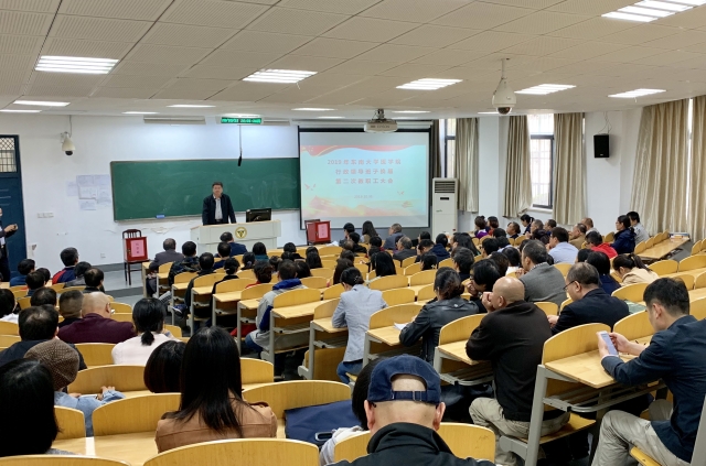 10月31日下午,我们在丁家桥校区基一楼101教室召开了2019年行政领导班子换届第二次教职工大会。大会由学院党委书记谭东伟主持,校换届工作组到会指导。