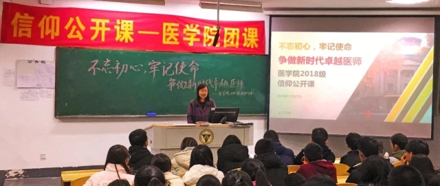 为进一步学习贯彻习近平新时代中国特色社会主义思想,深入推进“不忘初心、牢记使命”主题教育,全面把握“守初心、担使命,找差距、抓落实”的总要求,近日,我们团委老师们面向各年级本科生讲授了“不忘初心、牢记使命”主题团课。团课中主要介绍了我们和我们“不忘初心、牢记使命”主题教育开展情况,结合我们共青团工作,引导同学们树立坚定的理想信念,涵养天下情怀、人民情怀、家国情怀、奋斗情怀,增强“五种意识”的自觉,传承必威BETWAY官网特质的精神文化,争做新时代医学领军人才。