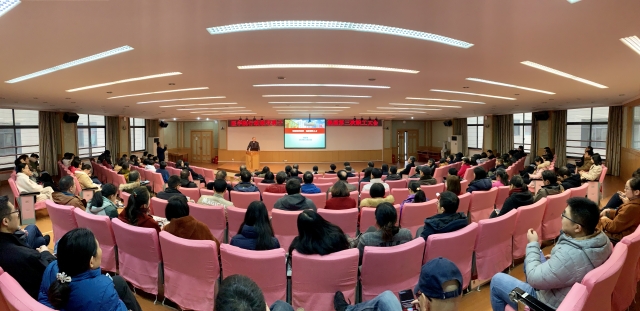 谭东伟书记的发言分为三个部分,一是向教职工通报我们“不忘初心、牢记使命”主题教育开展情况;二是十九届四中全会精神传达;三是题为“严守纪律规矩,提振师道尊严”的廉政宣讲,介绍了党风廉政建设和反腐败斗争新形势,解读了中央、教育部、学校的有关规章制度要求,并通过多个违纪违规警示案例,明确了高校教师纪律红线。