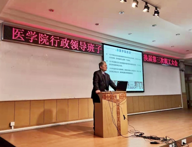 刘必成院长围绕“创建特色医科 培养领军人才”这一主题,在介绍必威·BETWAY历史与现状以及新医科建设背景的基础上,着重讲述了我们特色医科建设思路和下一步工作设想:坚持立德树人,抓住新医科发展的历史机遇,建立独具特色的医学领军人才培养体系,通过多学科融合交叉,为特色医科建设夯实基础;遵循现代医学教育规律和人才成长规律,主动迎接新技术革命挑战,搭建能够适应新医科发展要求的技术发展平台,用平台开创新业,用平台培养人才,用平台汇聚人才,努力把学院办成“领军人才培养基地、名师名医汇聚高地”。希望大家聚焦特色医科,瞄准难点,寻找突破点,增强危机感、紧迫感,主动学习,在特色上下功夫,并引用习近平总书记的话“伟大事业都始于梦想,基于创新,成于实干”,号召大家不畏困难,奋力向前,让必威·BETWAY这个具有80多年历史的学院重新放出光彩。