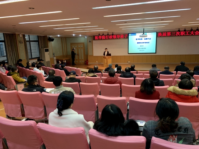 12月18日下午,我们第一届教职工代表大会第四次会议在丁家桥校区综合楼二楼报告厅召开,应到会代表48人,实到43人,列席代表8人。