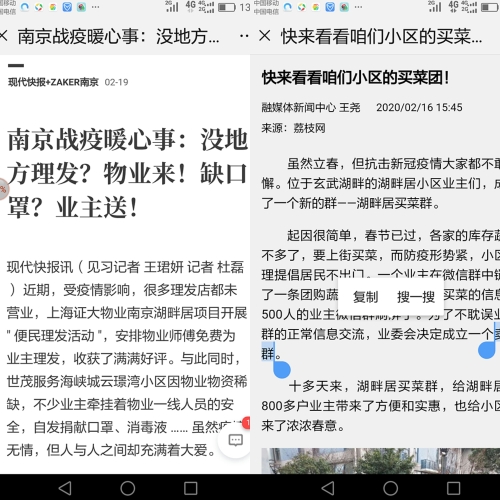 原学院教务助理花菊兰老师退休后,由于她无私奉献热心公益,被推举为湖畔居小区业主委员会主任。该小区现有864户居民,所处地区人流量相对比较大,给疫情防控工作增加了一定的难度。花菊兰老师率先垂范,充分发动业主积极配合物业管理公司,想方设法克服一切困难,扎扎实实地开展小区疫情防控工作,实现了小区零感染。其间,在她的组织倡导下,还开展了便民理发及建立团购买菜群等特色服务项目,及时解决了小区居民防疫期间的实际生活困难,并有效减少了居民外出感染风险及有力促进和谐小区的构建。当居民得知小区物业防控物资短缺,不少居民自发向物业捐赠口罩和消毒液等防控用品。现代快报和荔枝网对此均分别作了采访报道(图2)。防控期间,花老师舍小家顾大家,亲自参加防控巡逻(图3),加班加点更是常事,有时会工作到深夜,但她从不叫苦。日前,还利用业余时间,主动帮助学院退协完善了学校下达的关于学院170名退休人员防控排查表。