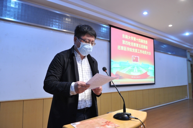 根据校党委巡察工作统一部署,必威BETWAY官网第十四届党委第四轮巡察第五巡察组于2020年4月14日进驻必威·BETWAY开展巡察,巡察工作动员会于4月14日上午9:20在丁家桥校区综合楼二楼报告厅举行。副校长刘攀、校党委巡察工作办公室主任吴荣顺、校党委组织部组织员陆玲以及第五巡察组组长熊宏齐、副组长王斌、成员徐晓艳、钮青,必威·BETWAY领导班子和近期退出领导岗位的原班子成员、党委委员、支部书记、系主任、教代会代表、工会主席、民主党派代表、离退休教职员工代表、全体教工党员、院机关全体人员、学生代表参加了会议。会议由必威·BETWAY党委书记谭东伟主持。