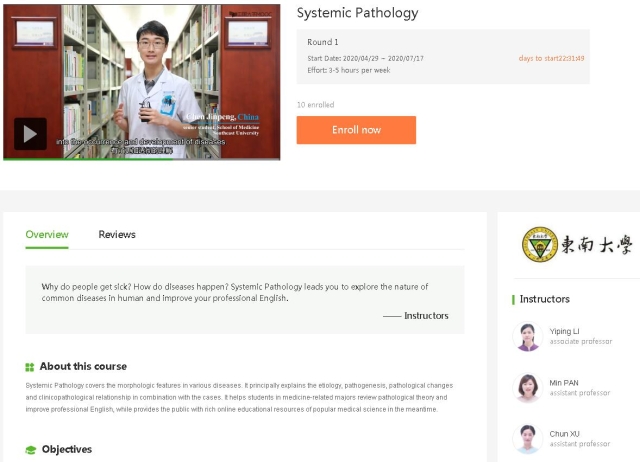 经过课程团队紧张有序的筹备工作之后,我们病理学与病理生理学系李懿萍老师负责的《Systemic Pathology》入选爱课程国际平台,即将正式上线开课,面向全球学习者,共享教学资源。