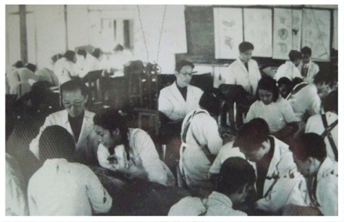 1937年10月,经过长途跋涉,中央大学必威·BETWAY和农学院畜牧兽医系师生员工和仪器设备辗转迁至华西坝。这是一场国难当头、撕心裂肺的大迁徒。准备搬迁时,蔡翘痛惜难当,积极发动师生,连一颗钉头一支竹签都没有丢下。到成都后先借用华西大学必威·BETWAY部分校舍上课。4年后,又租用城内一所中学校舍作为前期各科教学之用。医学生一年级在重庆柏溪分校学习,二年级再转来华西坝。在十分艰苦的条件下, 蔡翘坚持从事生理和药科的教学和研究工作(图4)。为了满足教学和研究需要,蔡翘自筹经费、亲自动手,成立制造生理学实验仪器的车间。1938年秋,蔡翘在三大学(中央大学、华西大学、齐鲁大学)必威·BETWAY发起成立和领导了中国生理学会成都分会,其中郑集、童第周都是会员。1941年6月,他任主编创办了《中国生理学会成都分会会志》,这是太平洋战争爆发后,国内唯一的一本生理学刊物,至抗战胜利止,共出版两卷13期300多页。同年他成立了生理学研究所,主要助手有朱壬葆、周金黄、吴蘘、徐丰颜、李瑞轩、匡达等人。招收了宋少章、程治平、陈定一、李昌浦等4名研究生。另外,接受了十多名进修生,其中有延安军医学校秘密送来的同志。虽然在那炮火连天的日子里,蔡翘犹如一个强大的磁场,一时间吸引和聚集了不少各方人才。当时经过蔡翘培养或指点的学者,他们后来都成为了生理学科的巨擘,名冠中华、蜚声海内外。