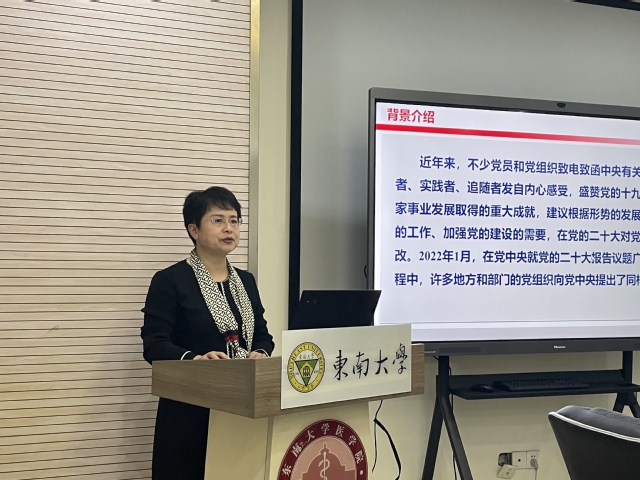 刘必成院长领学党的二十大报告。他表示,党的二十大报告是党和人民智慧的结晶,是党团结带领全国各族人民夺取中国特色社会主义新胜利的政治宣言和行动纲领,是马克思主义的纲领性文献,内涵丰富,思想深刻,真理性强。全院要认真学习、深刻领会大会精神,用实际行动全面贯彻落实总书记号召,在中国特色世界一流大学建设中,发扬创新精神、斗争精神,迎难而上,争取不断取得新的更大成就。