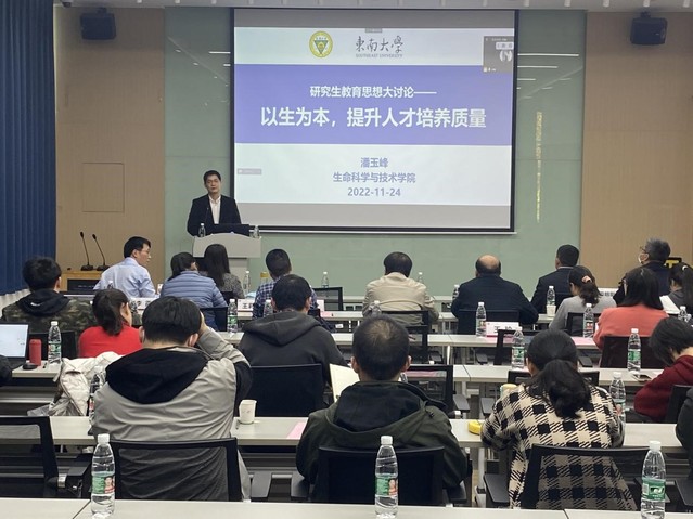 会议首先针对“研究生培养质量保证及导师指导能力提升”专题进行研讨。生命科学与技术学院副院长潘玉峰教授作了题为“以生为本,提升人才培养质量”的主题报告,他就培养什么样的研究生、在研究生培养体系中导师学生层面中存在的不足和形成这些问题的主客观原因,以及如何从学校、学院、教师、学生和氛围等方面有效改进的办法做了精彩演讲。他特别强调了“师风师德”作为基本职业素养的重要性,提出“以生为本”不仅是教学科研,还需全方位的保障指导和关怀。同时,他还详细介绍了生科院在研究生培养方面实行轮转制度和过程化培养的特色工作及成效。