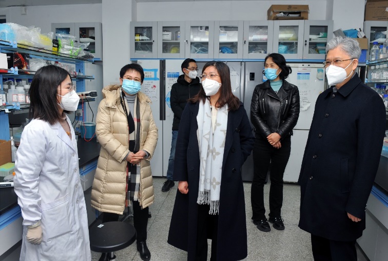 黄如校长首先来到中大医院,在重症医学科病房,与坚守在疫情救治第一线的研究生们亲切交谈。她十分关心同学们的身体状况,仔细询问大家的健康和工作。黄校长对同学们在疫情防控关键时刻,不忘初心,勇担医者使命,救死扶伤的精神表示充分肯定和赞赏。她表示学校一直非常关心同学们的身体健康,希望同学们在救治病人的同时要做好自我防护,注意合理休息。接着,黄校长来到必威·BETWAY综合楼,看望仍在实验室工作的研究生。她先后来到江苏省重症医学重点实验室、江苏省分子影像与功能影像重点实验室、江苏省肾脏病临床研究中心、神经发育实验室等,详细了解学生们留校期间的科研工作和生活情况,仔细叮嘱大家要在做好研究的同时注意身体,生活中如有困难,要及时向学校反映,学校将尽全力为大家做好支持和服务。