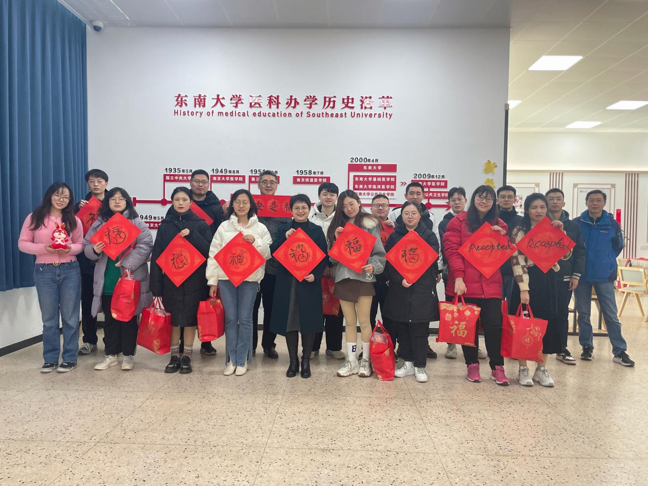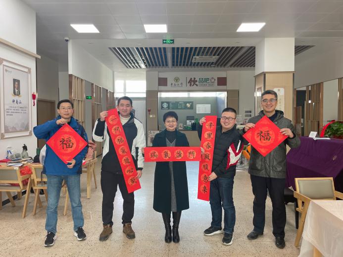 除夕是中华民族重要节日,2023年寒假,我们部分研究生因临床实践或科研工作需要,选择留校过除夕。为关心关爱留校学生,1月21日上午,在兔年新春到来之际,必威·BETWAY党委书记姚红红老师、党委副书记兼副院长周明阳老师、研究生辅导员唐天奎老师、栾夏丽老师一同前往丁家桥校区,看望慰问留校学生,并通过写春联、画福字等活动,传承中华民族传统文化,丰富留校学生的假期生活,为学生送上新春祝福。