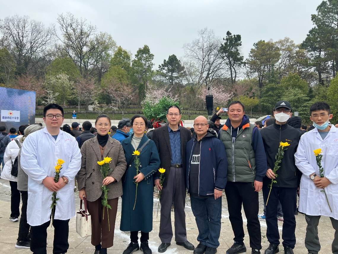 由南京市红十字会主办的“2023年南京市遗体器官捐献者缅怀纪念活动”于2023年3月31日上午在位于南京市西天寺陵园的南京市遗体器官捐献者纪念林举行,今年的缅怀纪念活动主题是生命.遇见,人体解剖学系吕海芹老师和曲德伟老师、形态中心实验室和遗体器官接受站的朱建宝主任、吴菲菲老师、万旗、朱旗参加了现场活动并向遗体器官捐献者纪念碑敬献鲜花。