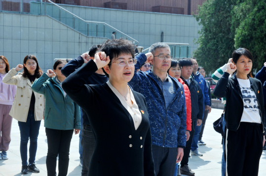 随后,全体老师在粟裕将军墓和革命烈士墓前敬献花篮,寄托对革命先烈的无限哀思。在庄严的党旗下,由姚红红书记带领大家重温入党誓词。
