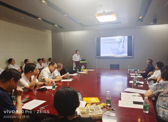 随后,胡浩霖副主任医师、梁平副主任医师、郭倚天讲师、张胜讲师、叶卉讲师、杜荣讲师六位老师代表23年秋季学期全体授课教师进行了集体备课。六位老师汇报了外科学面对不同的授课群体(临床医学、检验医学本科生、MBBS留学生)授课时的区别,及外科学临床技能培训与外科学理论授课的区别。督导组老师对他们的集体备课给予了高度肯定,并提出专业且实用的建议,尤其是针对不同的授课群时,授课内容、形式等要有对应的变动。授课内容要符合教学大纲和上课学时,在有限的学时内授予学生生动、经典的教学内容。
