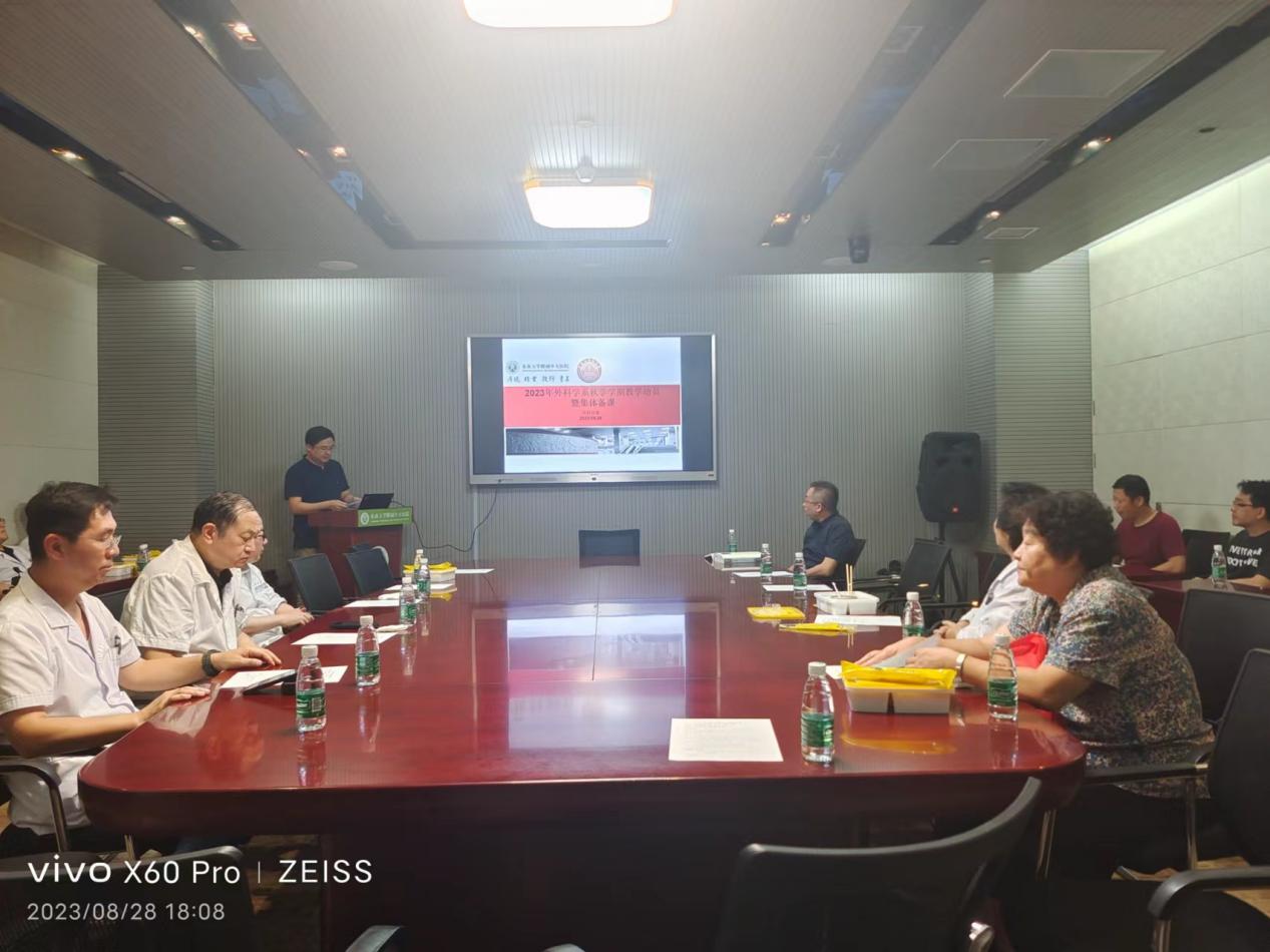 芮云峰教授主持会议并致开场辞,他感谢督导组老师及外科学系各位教授百忙之中参加此次会议,指导外科学系的教学工作;同时感谢23秋季学期全体授课教师积极参加集体备课,为促进外科学系教学水平提高作出的努力。