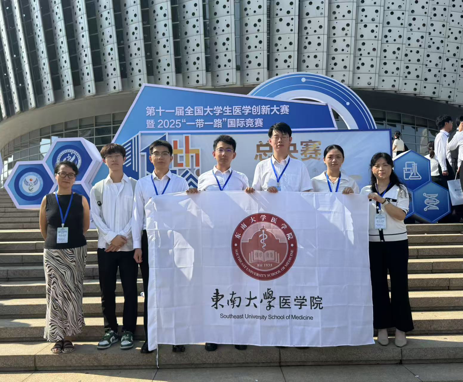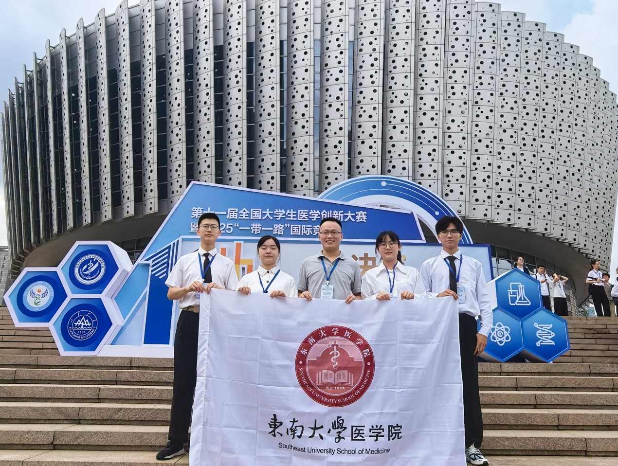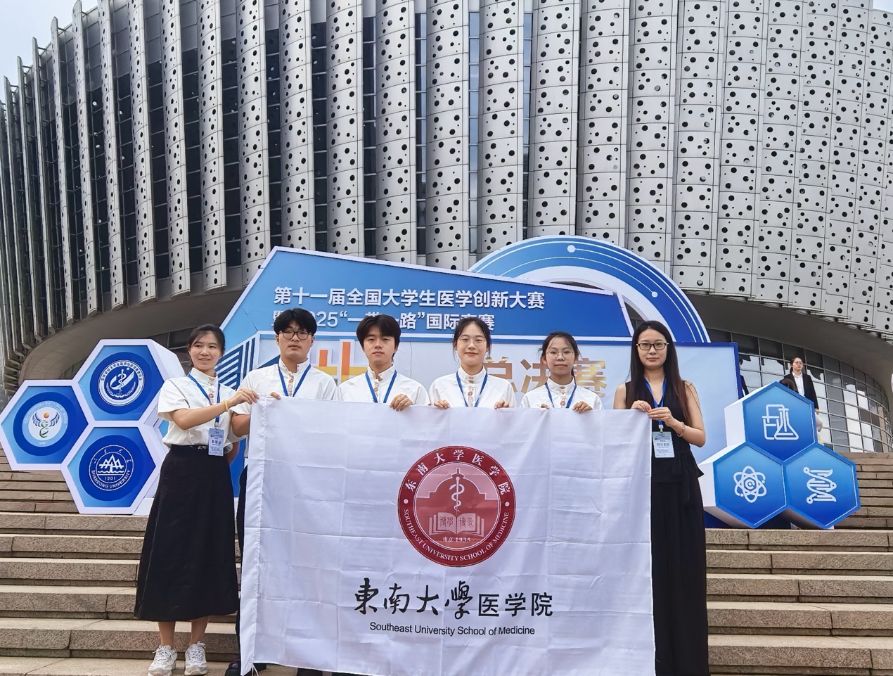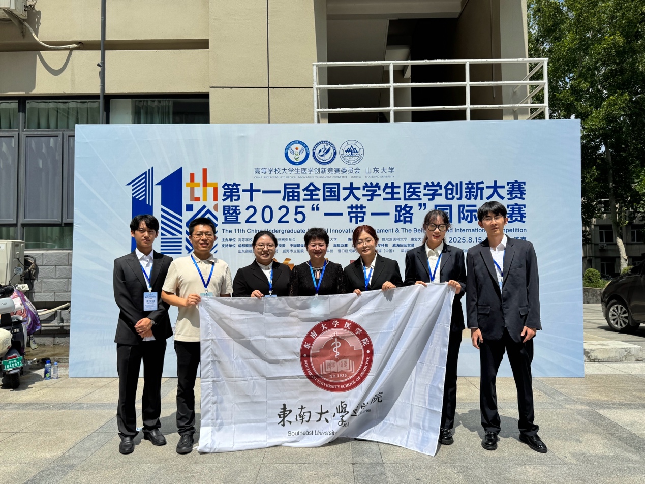 2025年8月15日-8月19日,第11届全国大学生医学创新大赛暨“一带一路”国际竞赛总决赛在山东大学圆满落幕。本次大赛由高等学校大学生医学创新竞赛委员会主办、山东大学等承办。比赛分为28个分赛场举行,来自10余个国家、201所高校的820余支队伍,4000余名师生、200余位嘉宾与评审专家参加活动,评审专家中半数以上为各类国家级人才。总决赛设金奖、银奖、铜奖和单项奖(最佳学术奖,最佳风采奖、最佳团队合作奖),并增设全国总冠军争夺战环节,本科院校各学科赛道各赛场的第1名进入终级角逐。采用赛前命题、借助AI工具等在现场进行创新设计、限时比赛模式,决出终极大奖:全国总冠军、亚军、季军及全国前十。